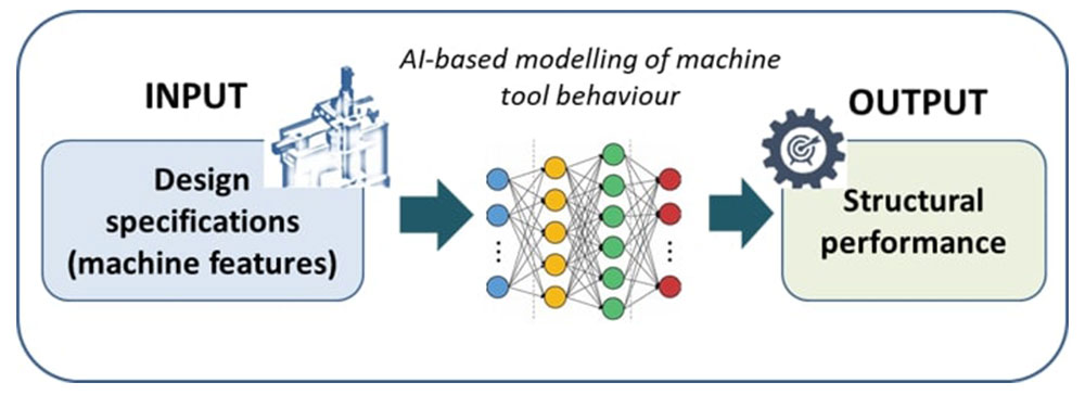 The AI-based (surrogate modelling) approach proposed in this experiment should predict the main structural performance of a machines tool, starting from its basic design features/parameters.